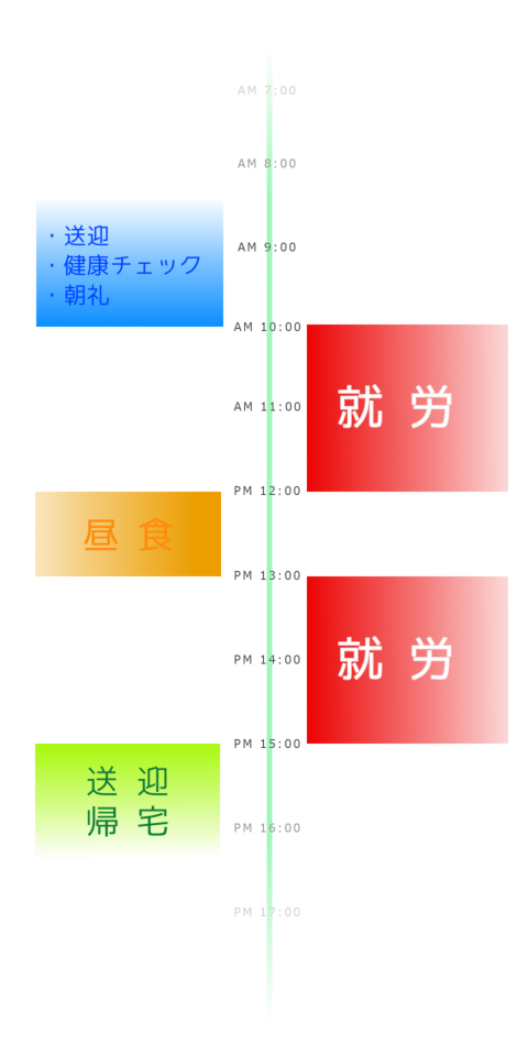 じゃんぴんぐVOYの就労の一日の流れです。