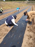施設外就労でトウモロコシの種植えを行いました!ちっちゃい種を土に開けた小さな穴に入れていく作業です。広い畑なので気が遠くなる作業で、さらに腰に負担がかかる作業ですが、ポカポカ陽気の中作業を行うことができました。